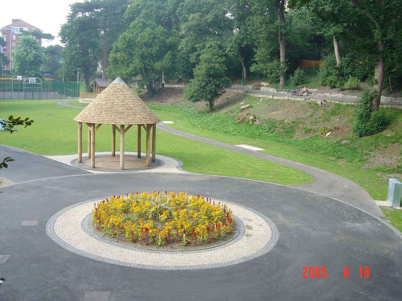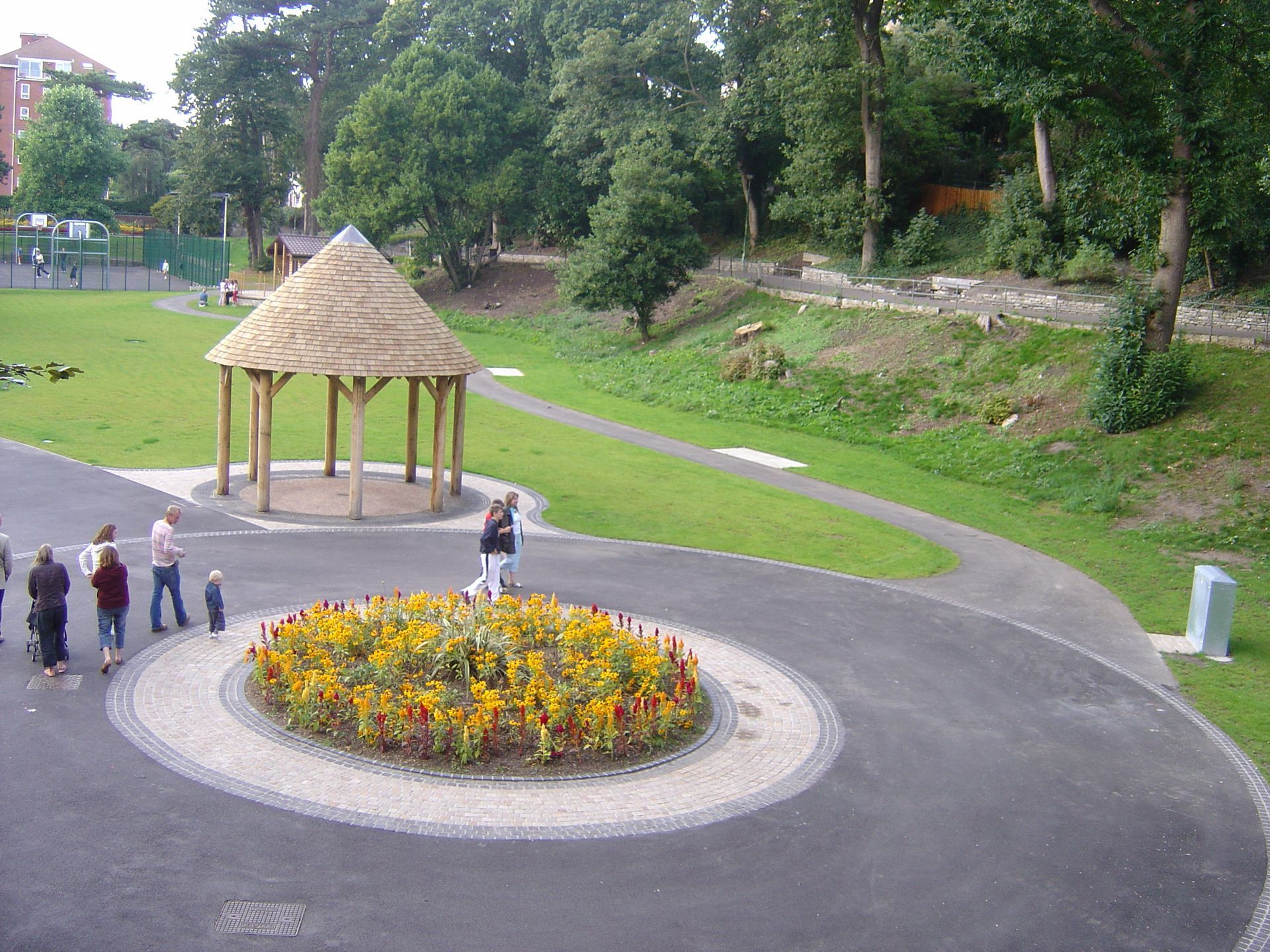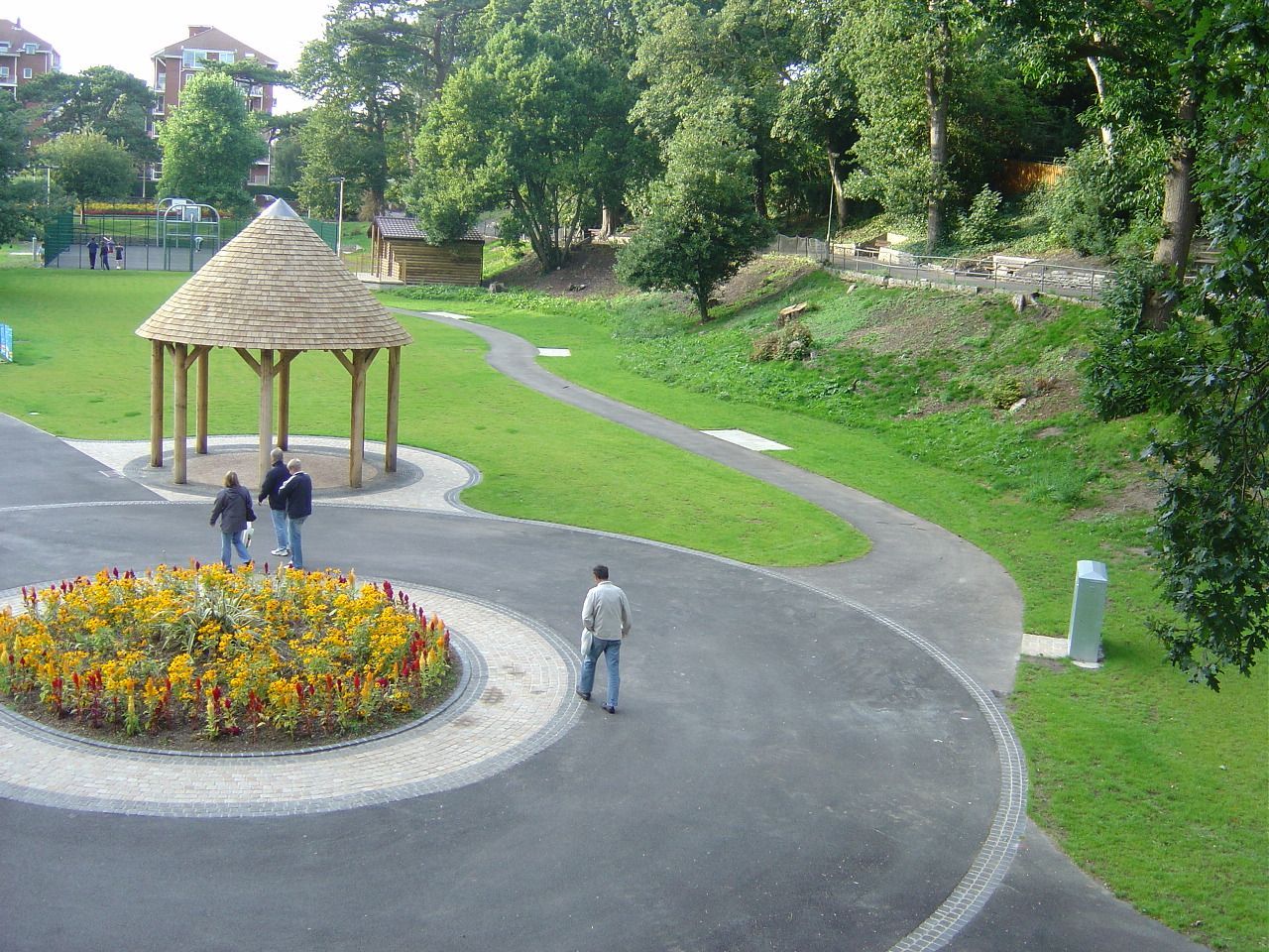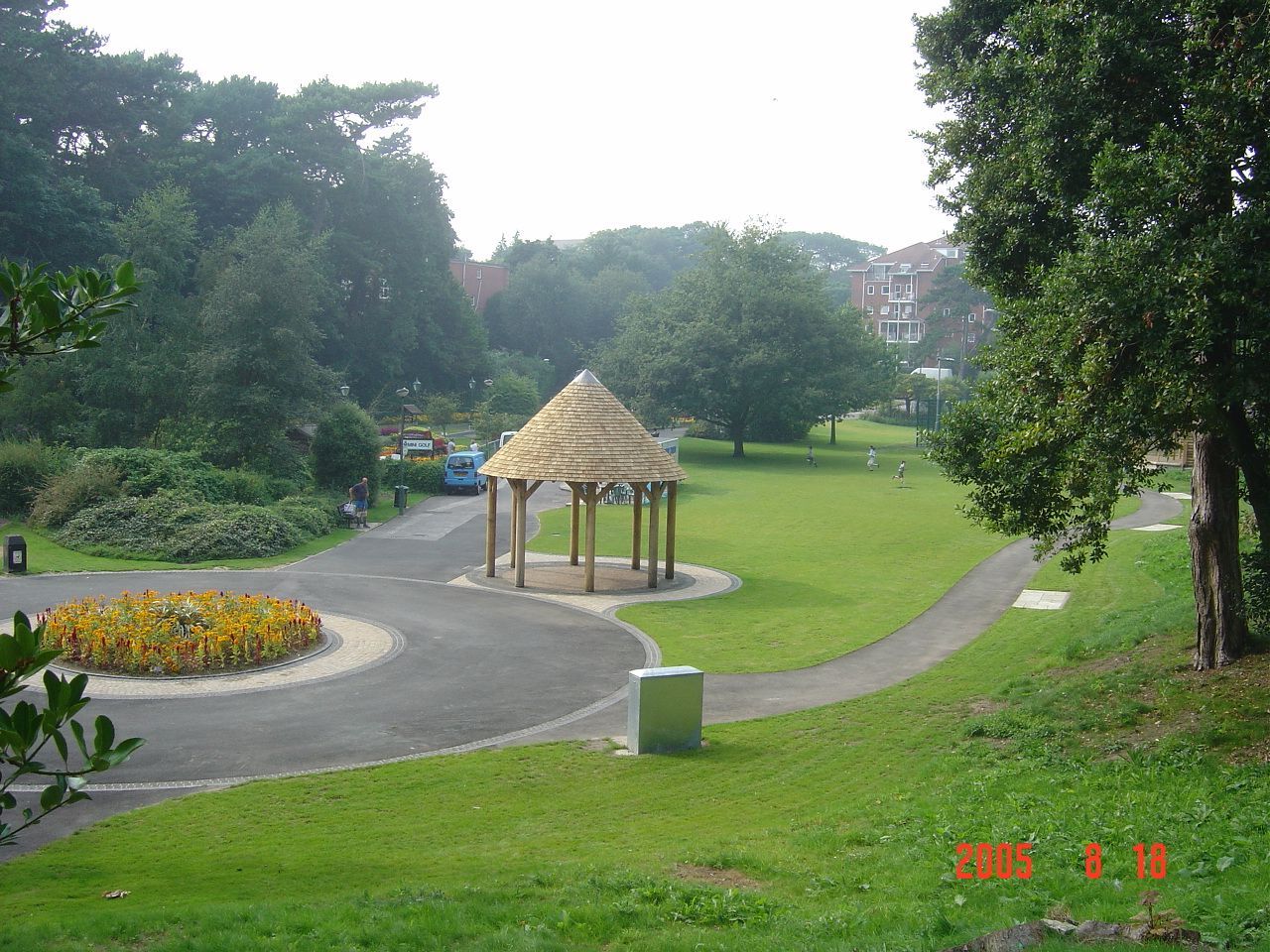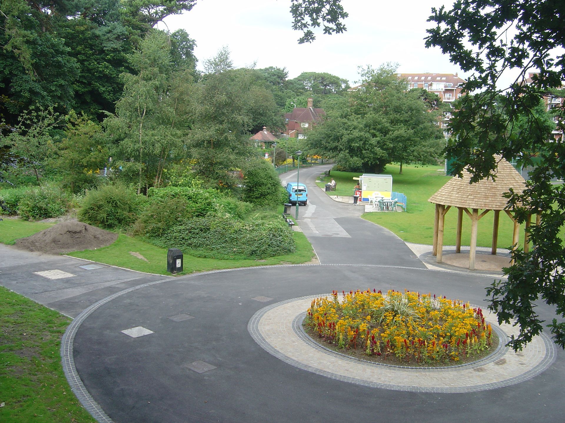 - Further down the gardens is an interpretation of the original circular spa shelter with a conical, oak shingled roof that acts as a stop off point for the Bournemouth land train.